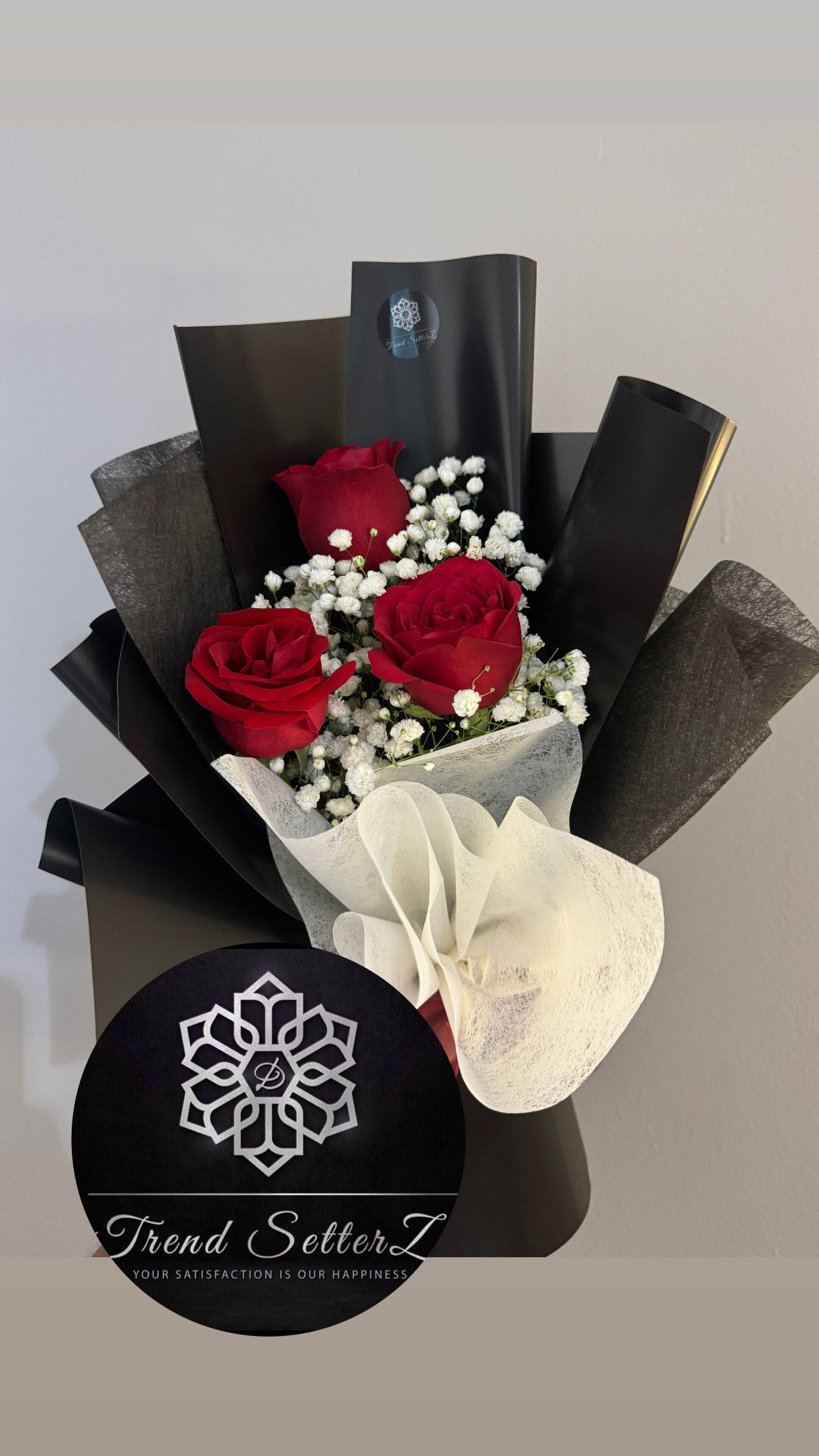 Red Roses (3) & Baby Breath