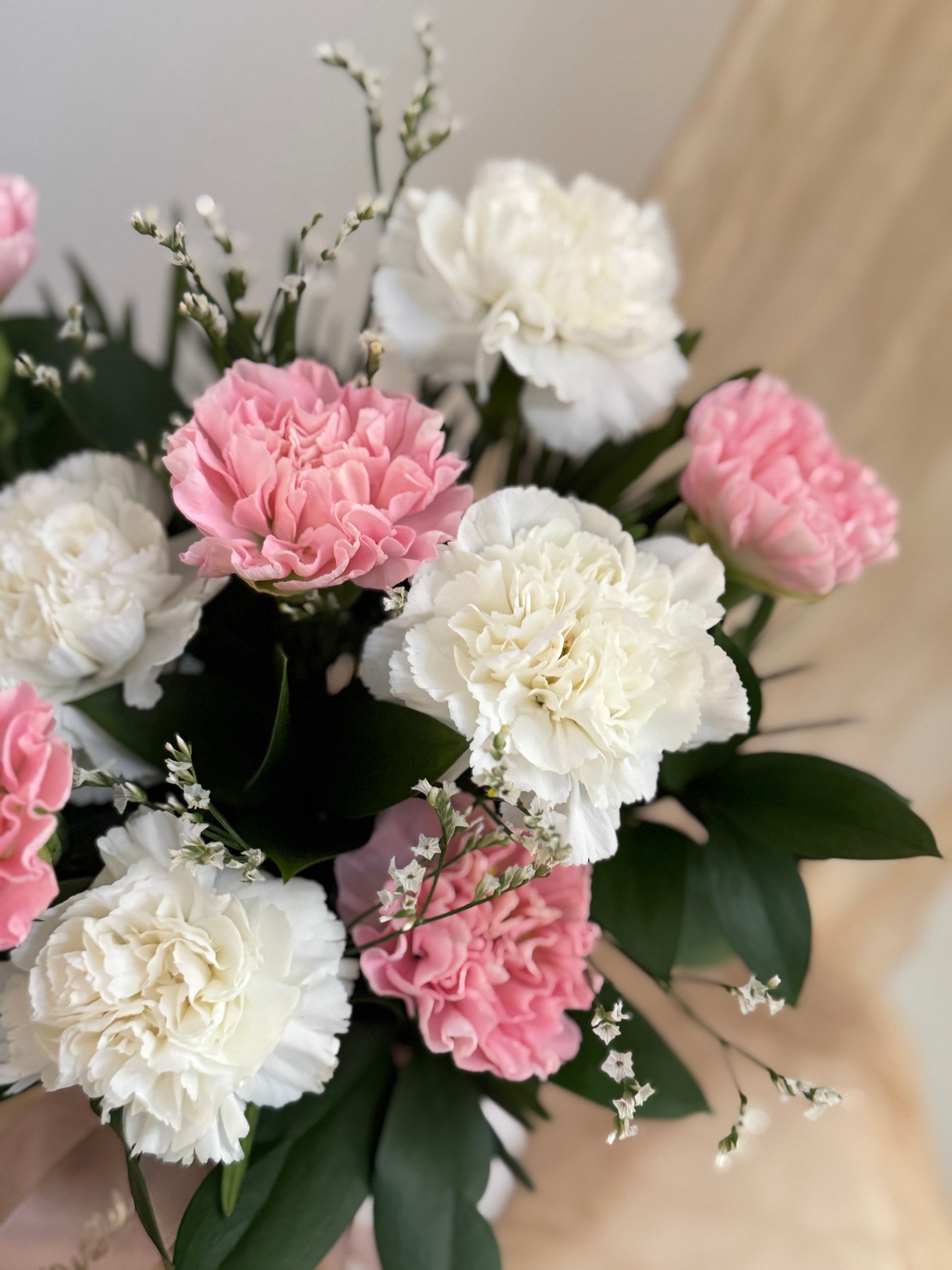 Soft Pink Carnation (5), White Carnation (5) & Fillers